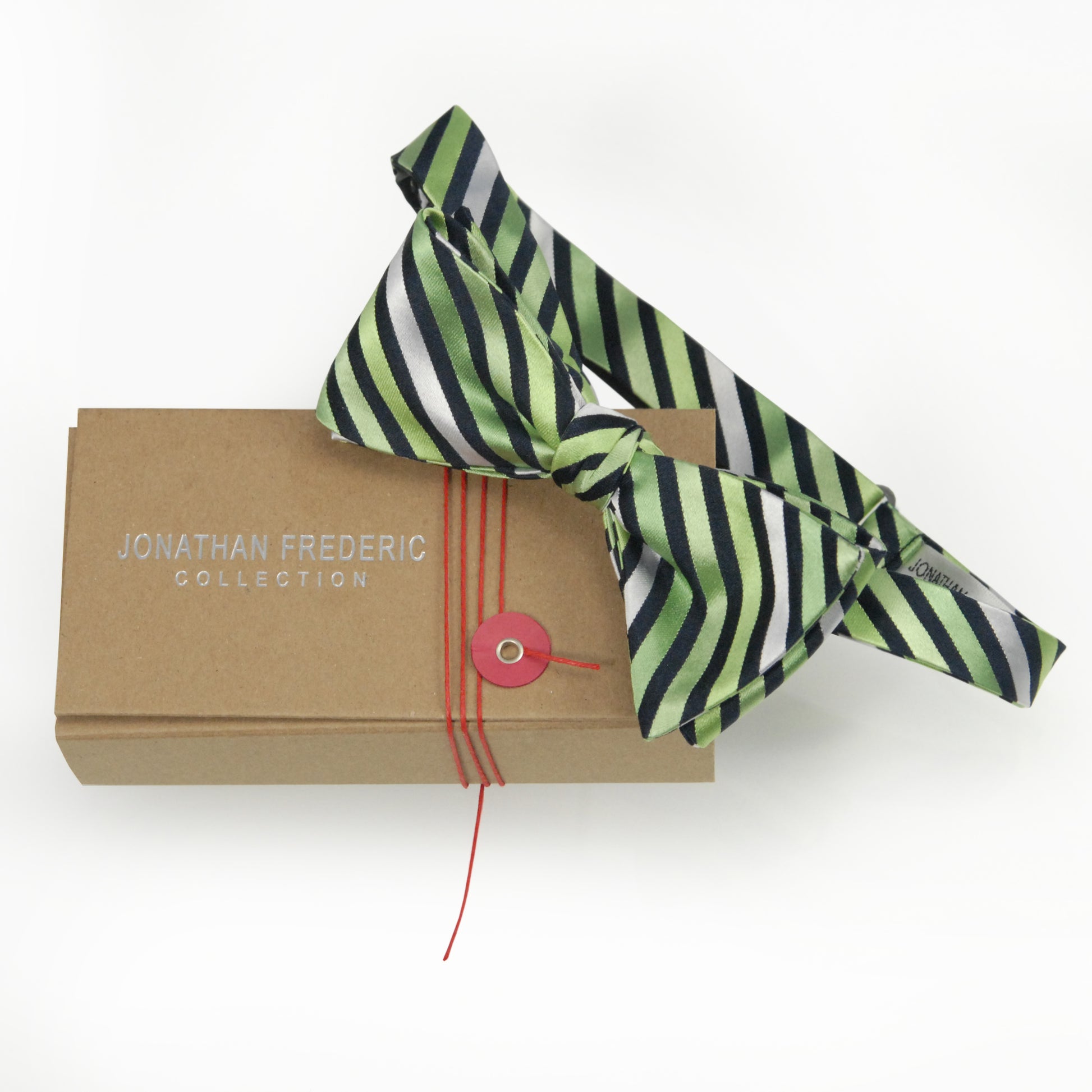 Jonathan Frederic Collection “Mercer” Green Stripe Silk Self Tie Bow Tie