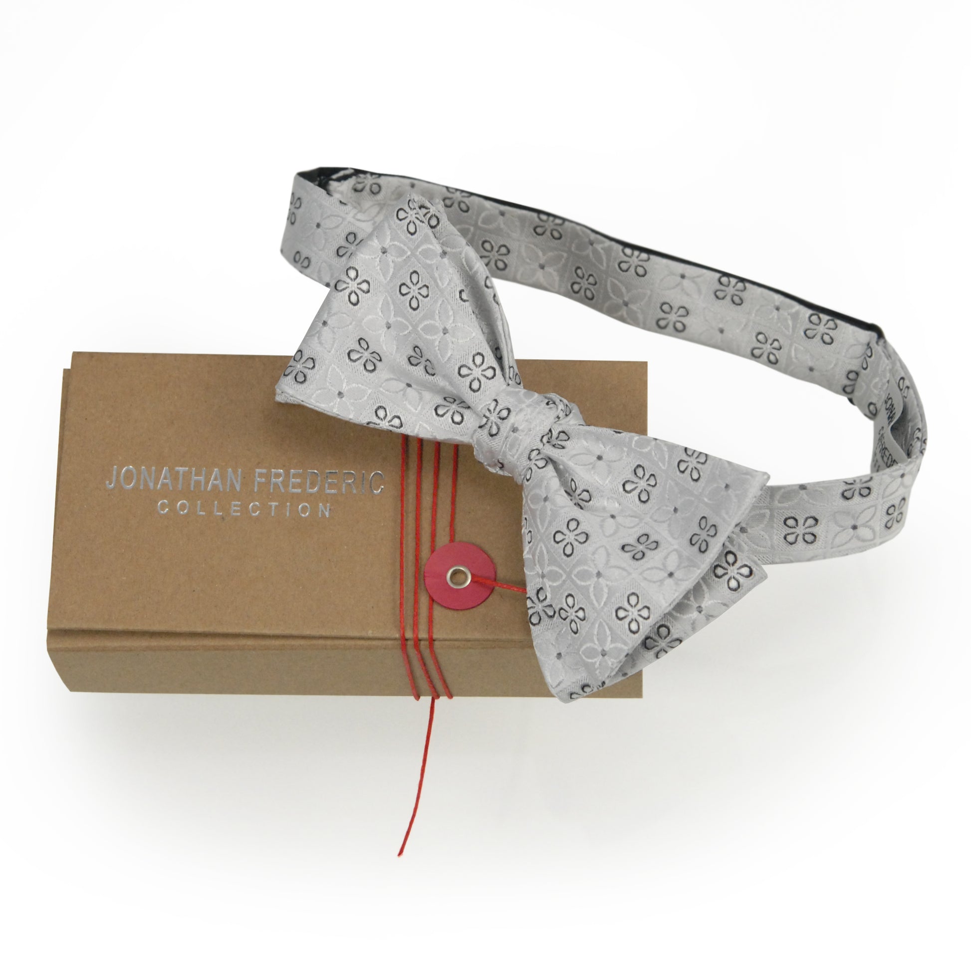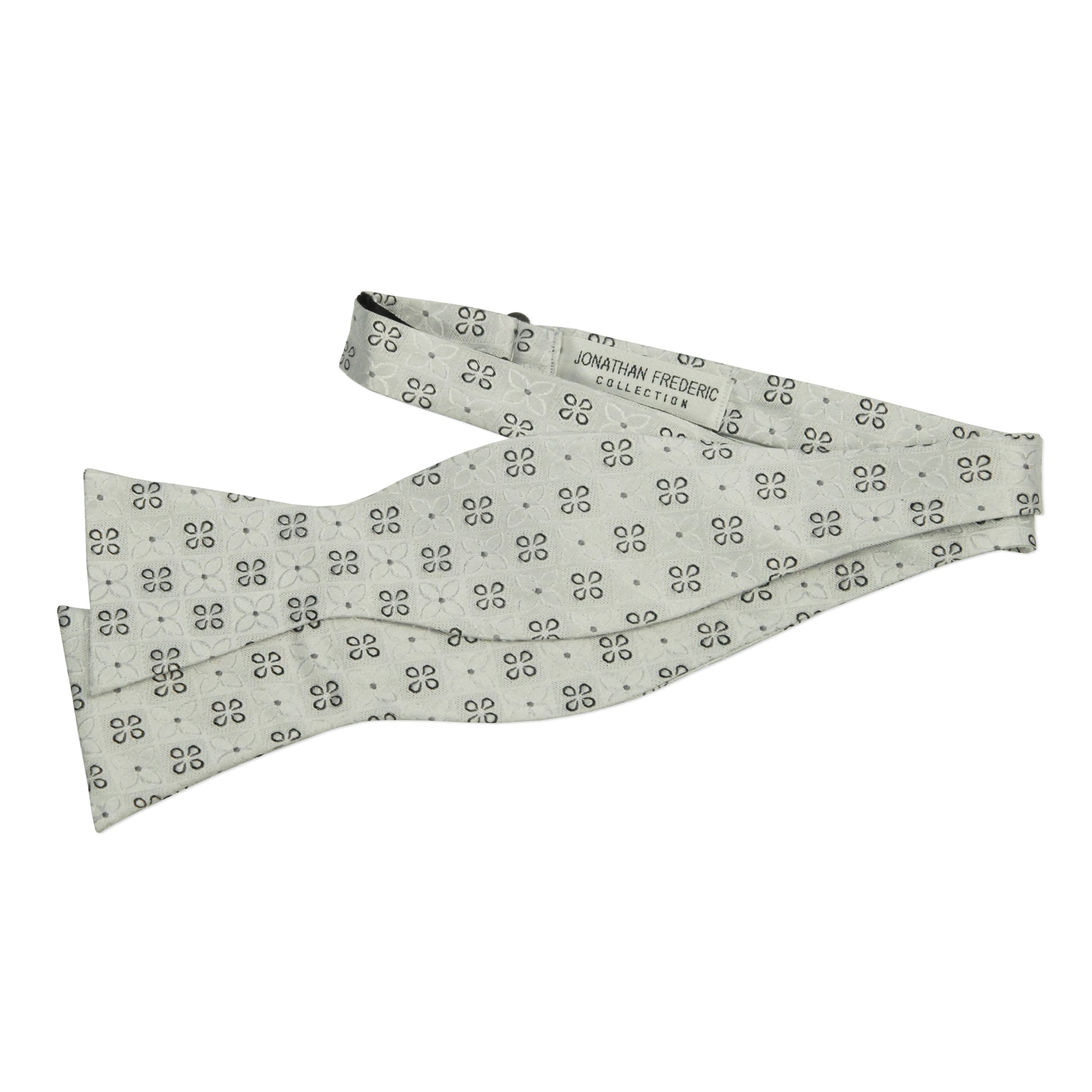 Jonathan Frederic Collection “Pine” Grey and Black Silk Self Tie Bow Tie
