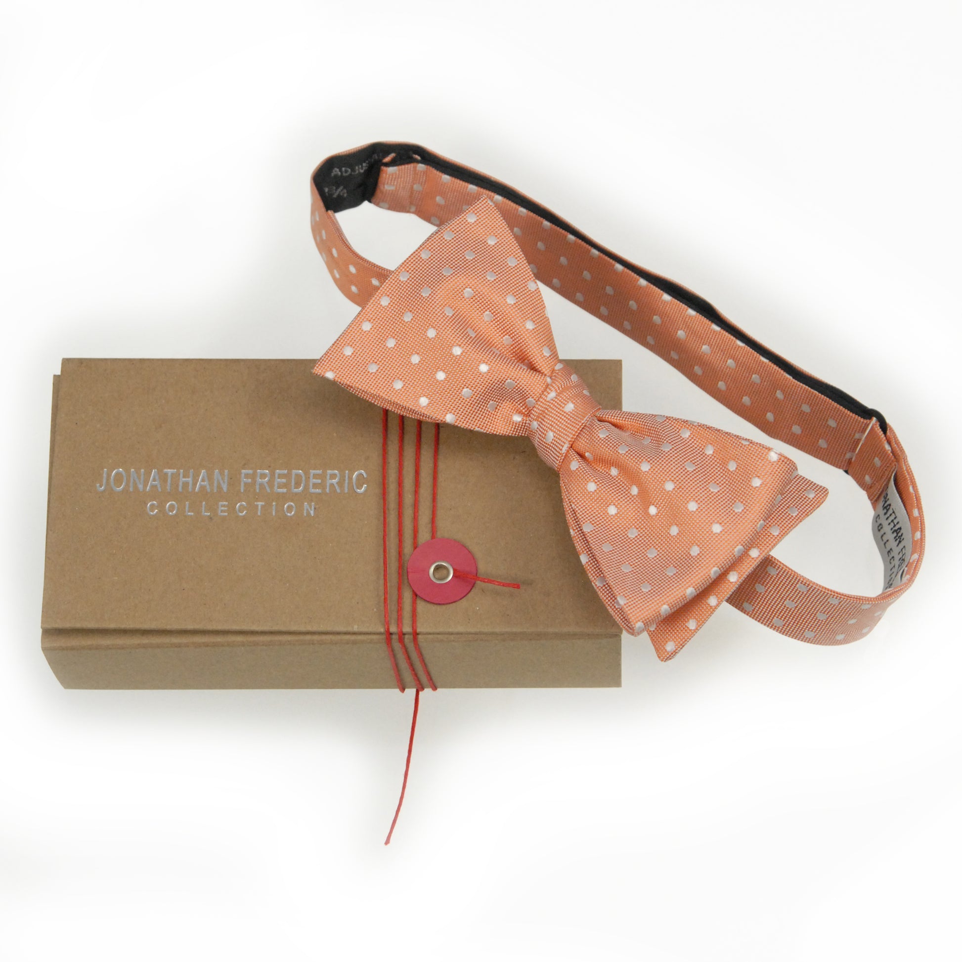 Jonathan Frederic Collection “Virginia” Orange Dot Silk Self Tie Bow Tie