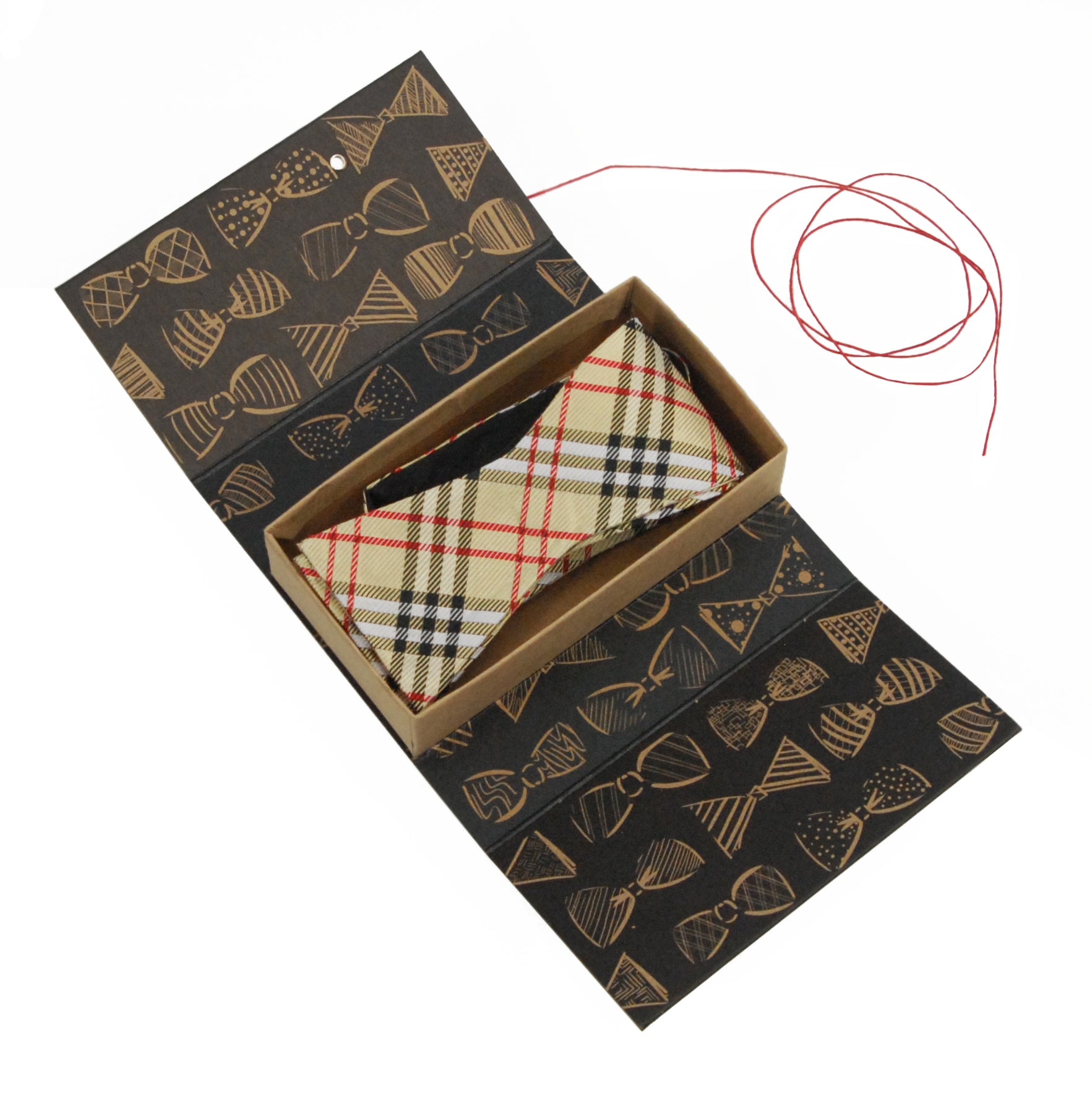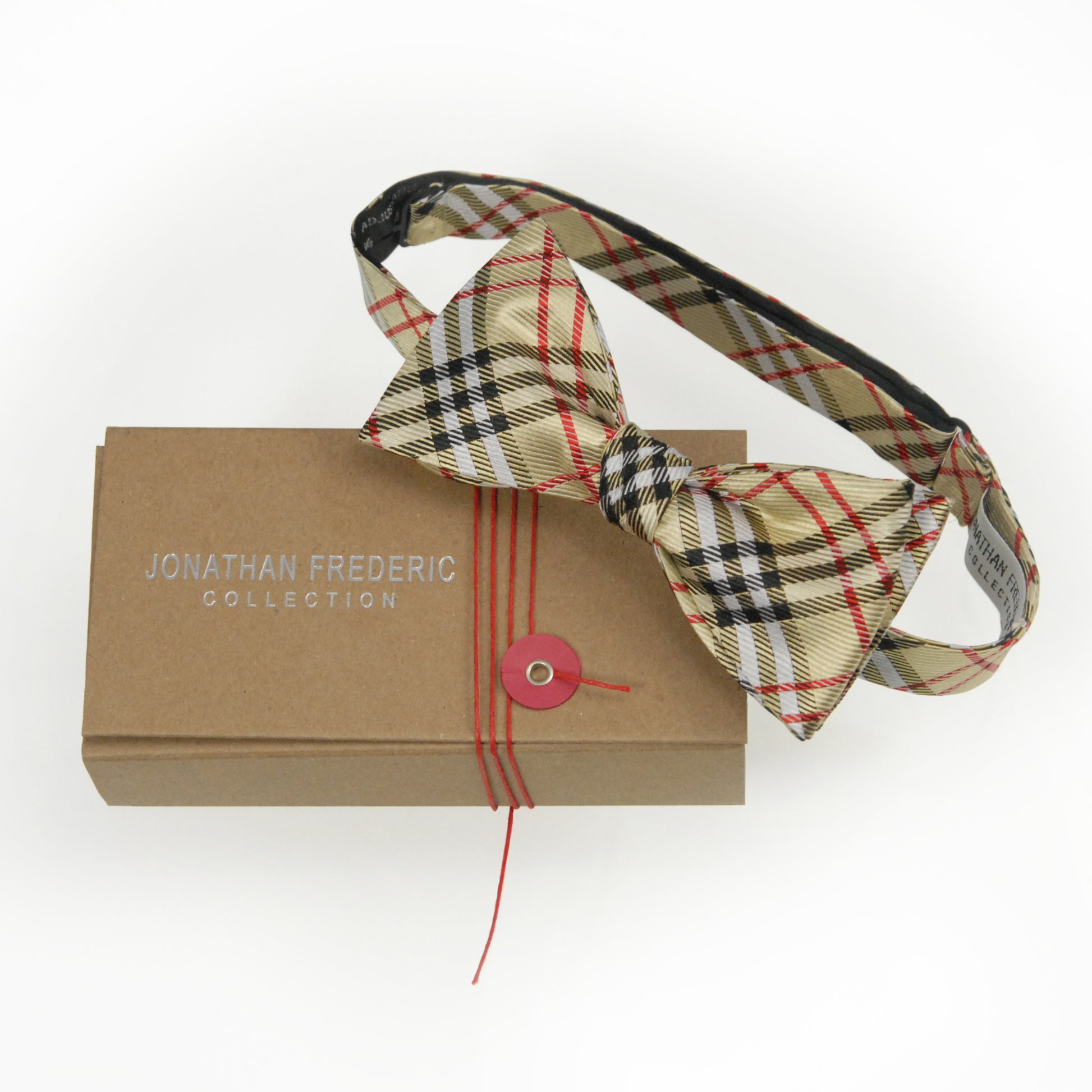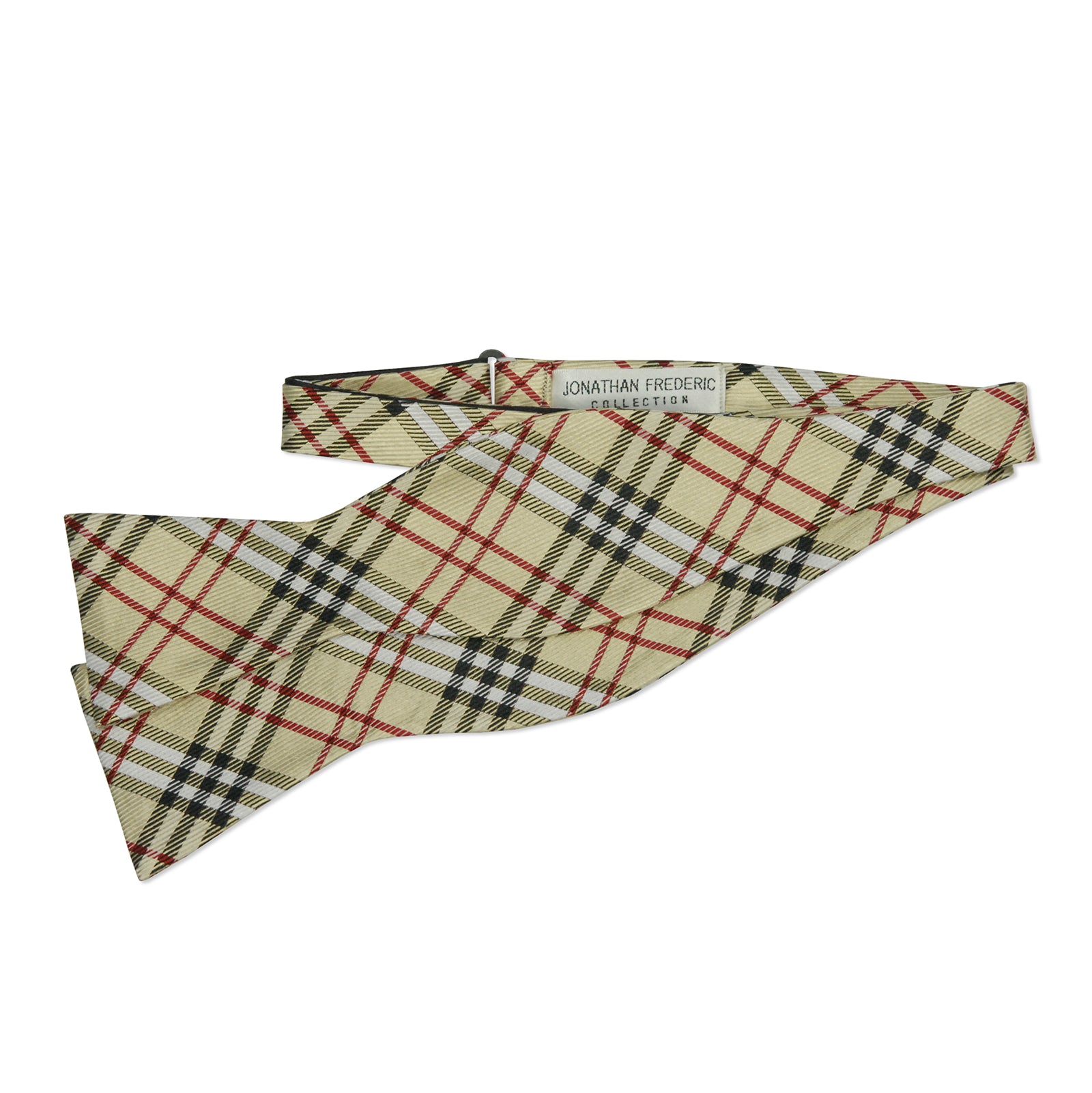 Jonathan Frederic Collection “Denny” Beige Plaid Silk Self Tie Bow Tie