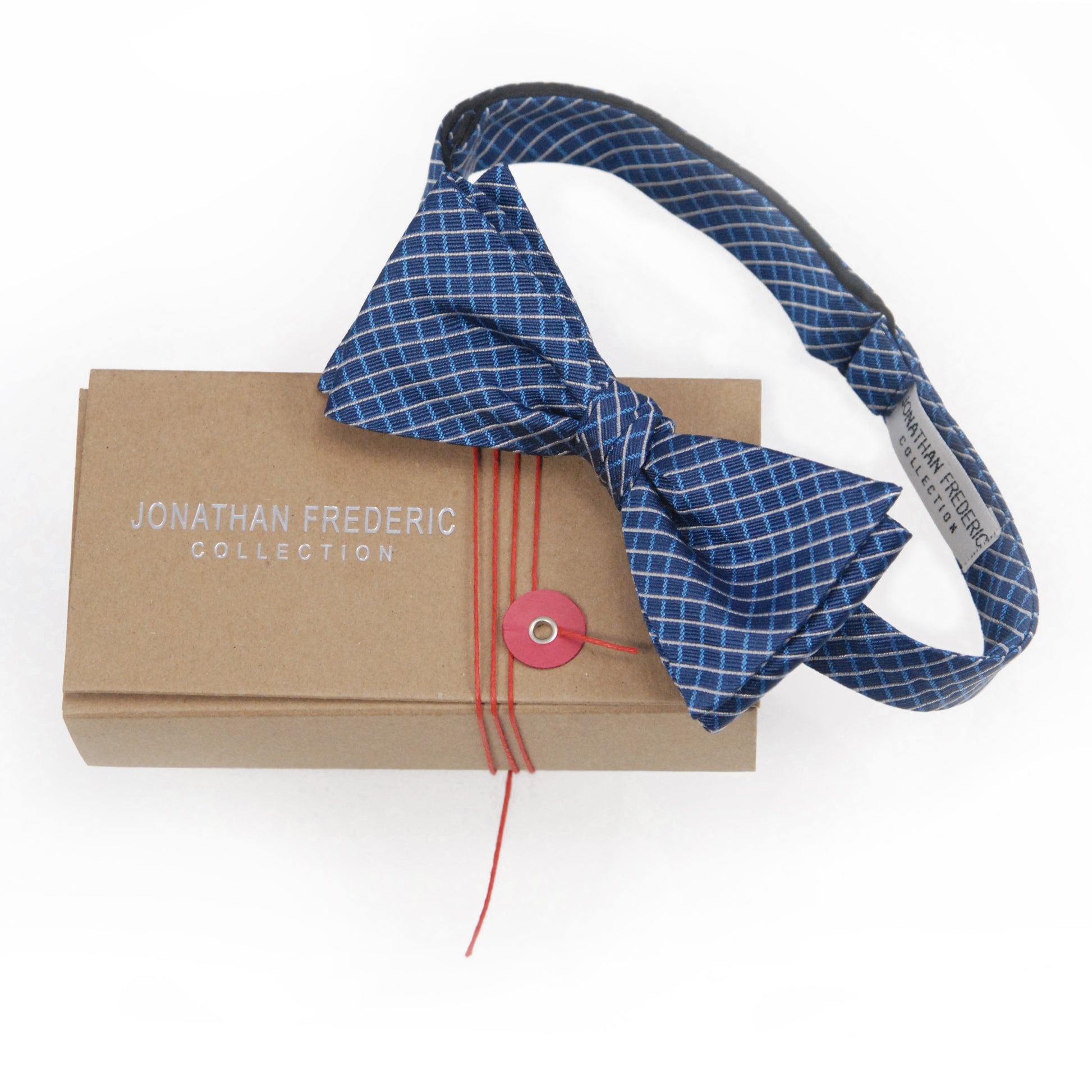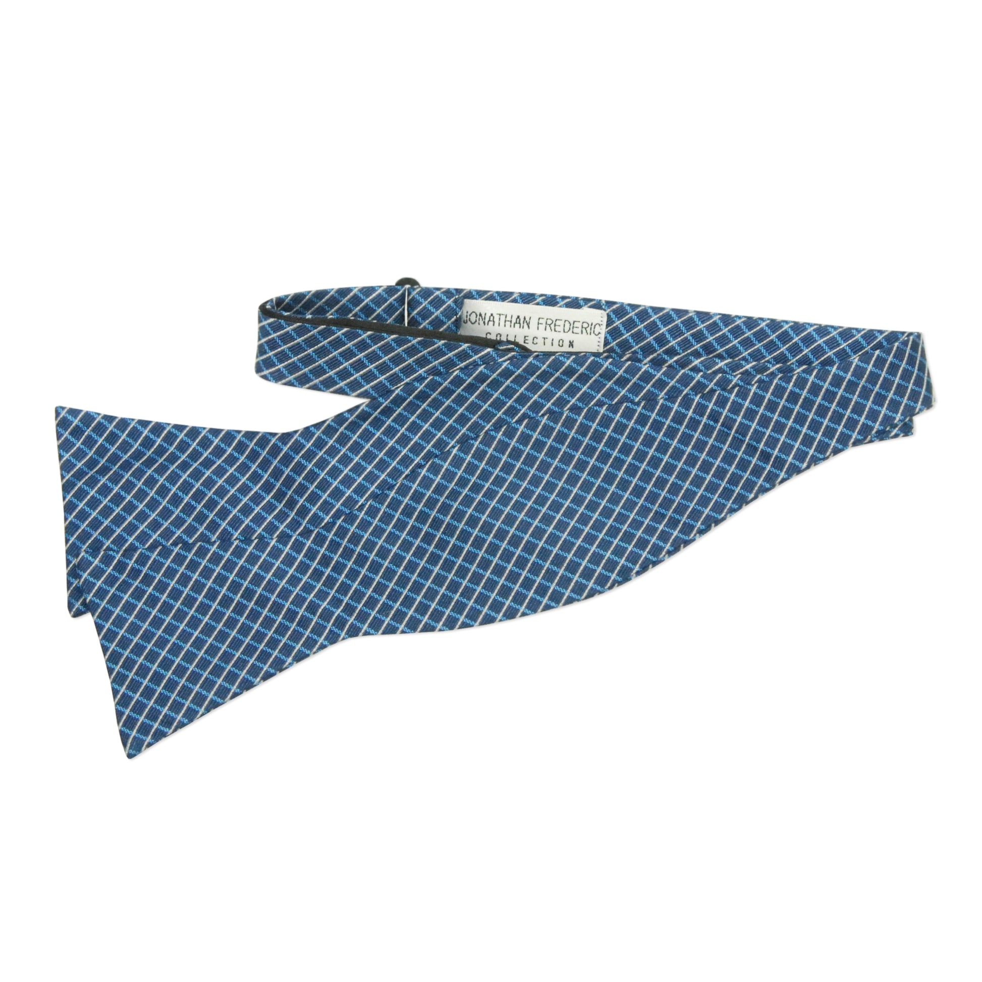 Jonathan Frederic Collection “Jackson” Blue Plaid Silk Self Tie Bow Tie