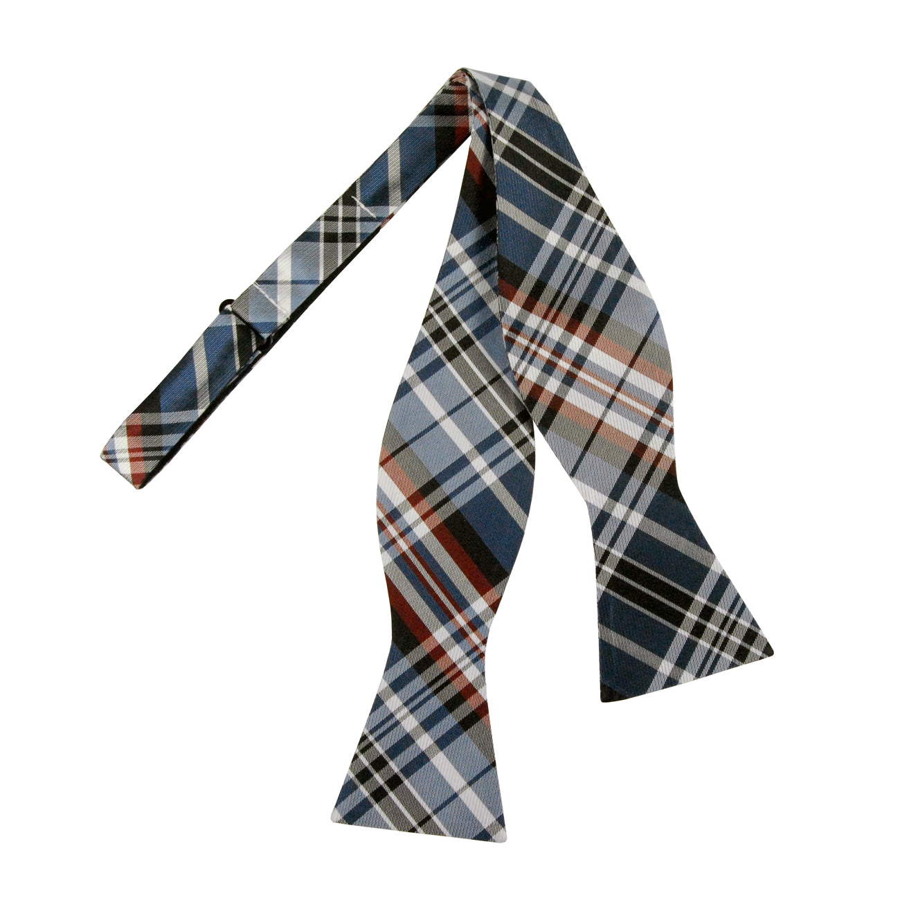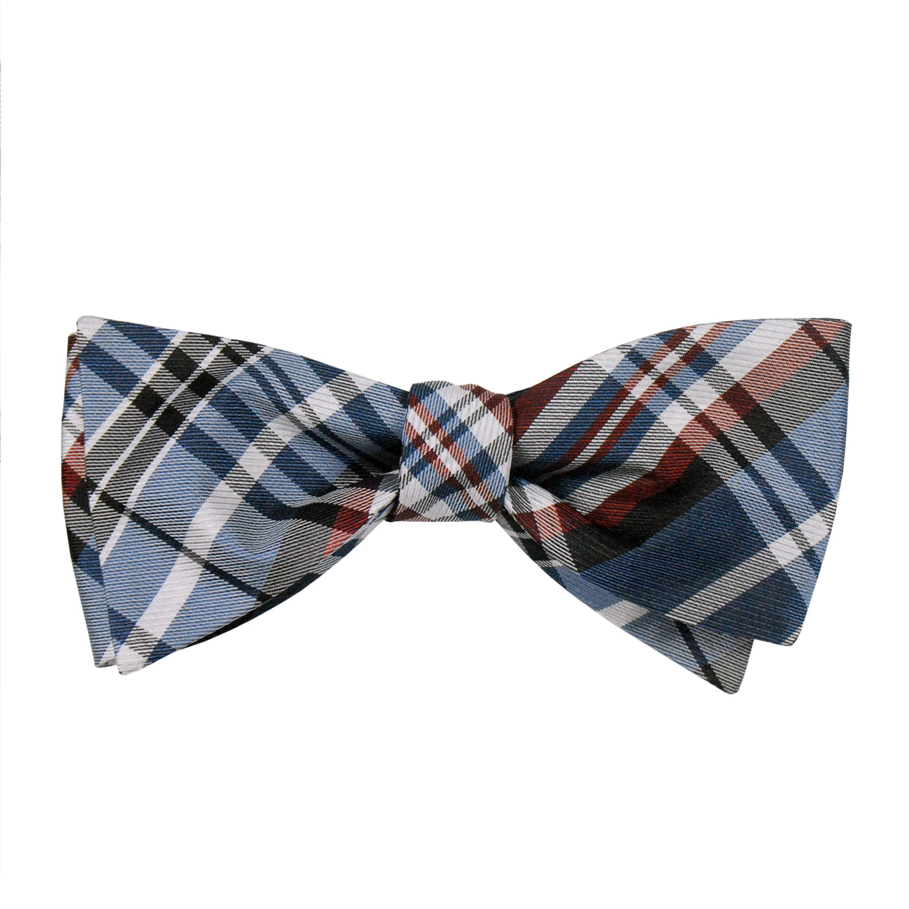 Jonathan Frederic Collection “Rainier” Navy & Burgundy Plaid Silk Self Tie Bow Tie