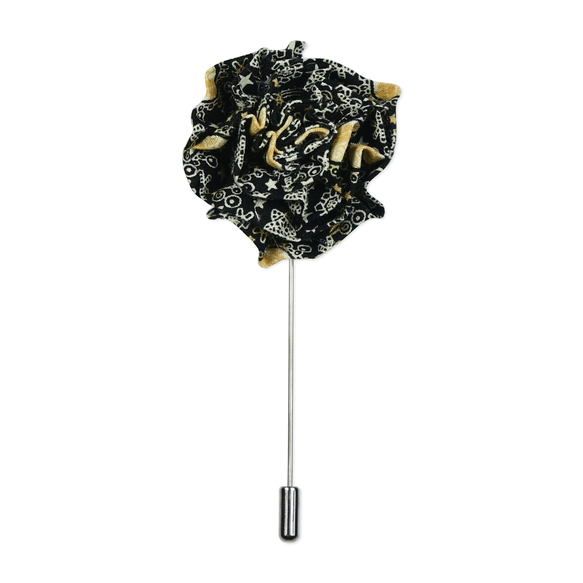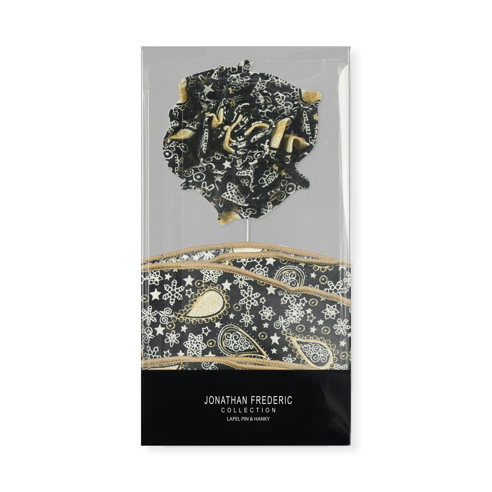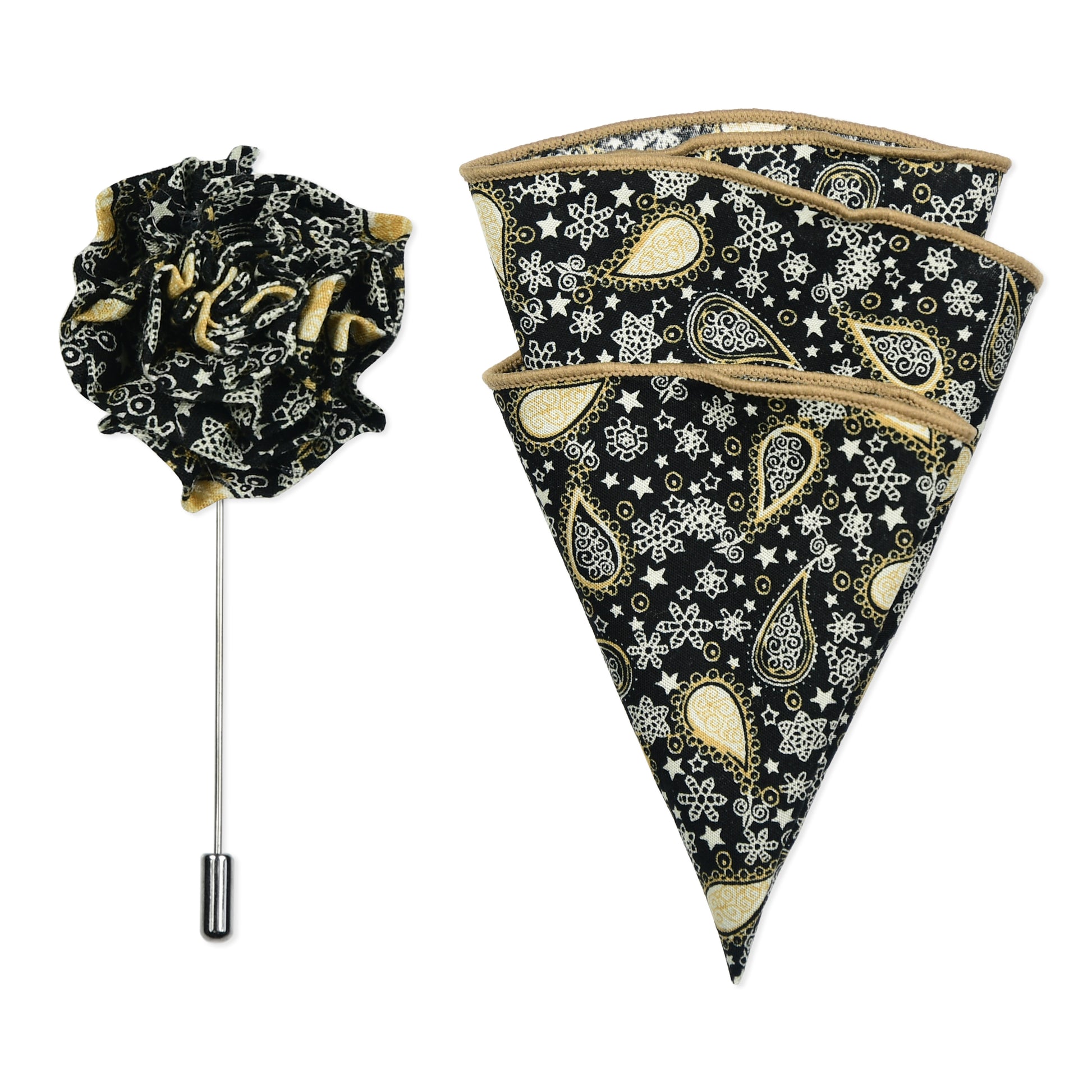 Black & Gold Paisley Lapel Pin & Hanky Set