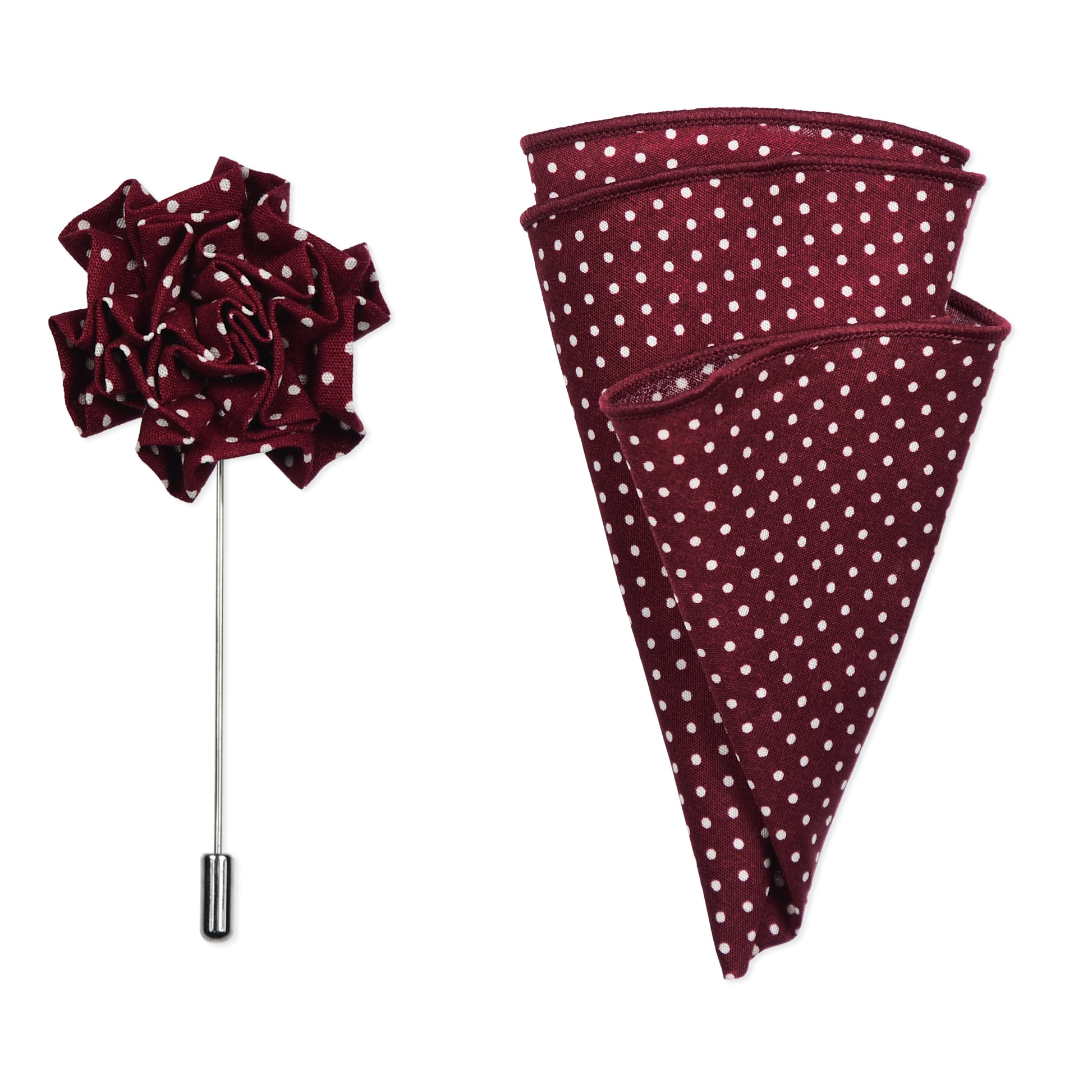Burgundy Polka Dot Lapel Pin & Hanky Set