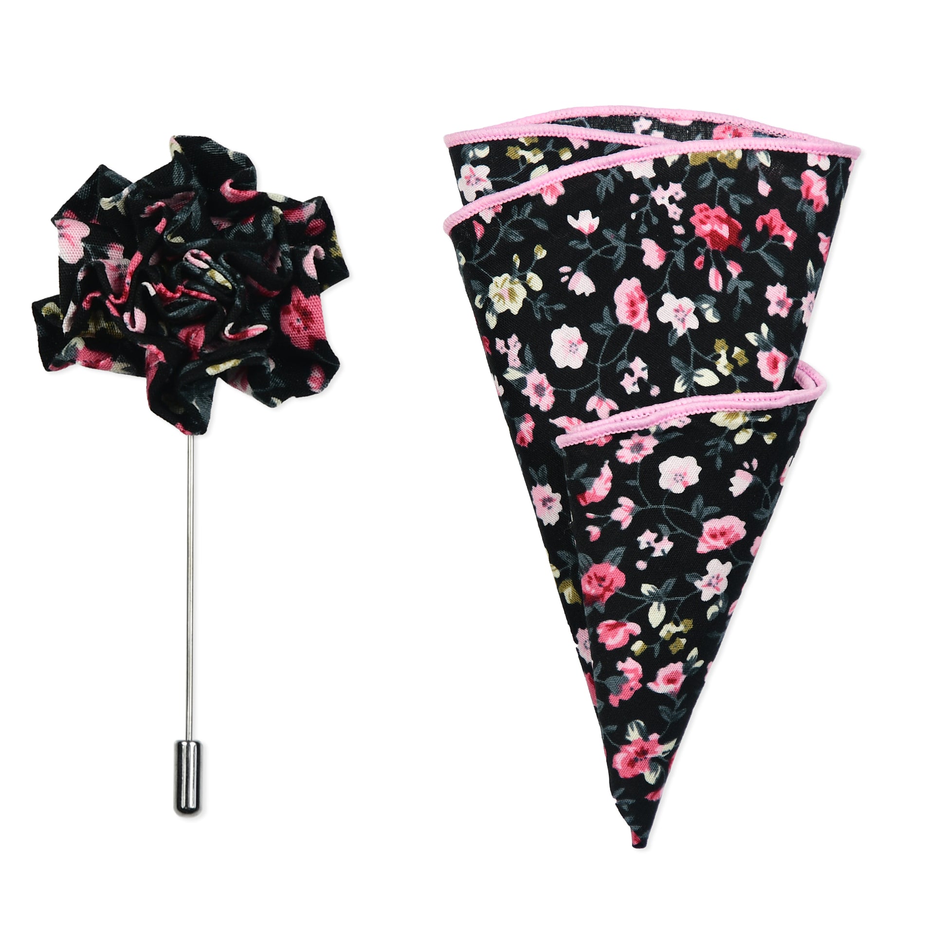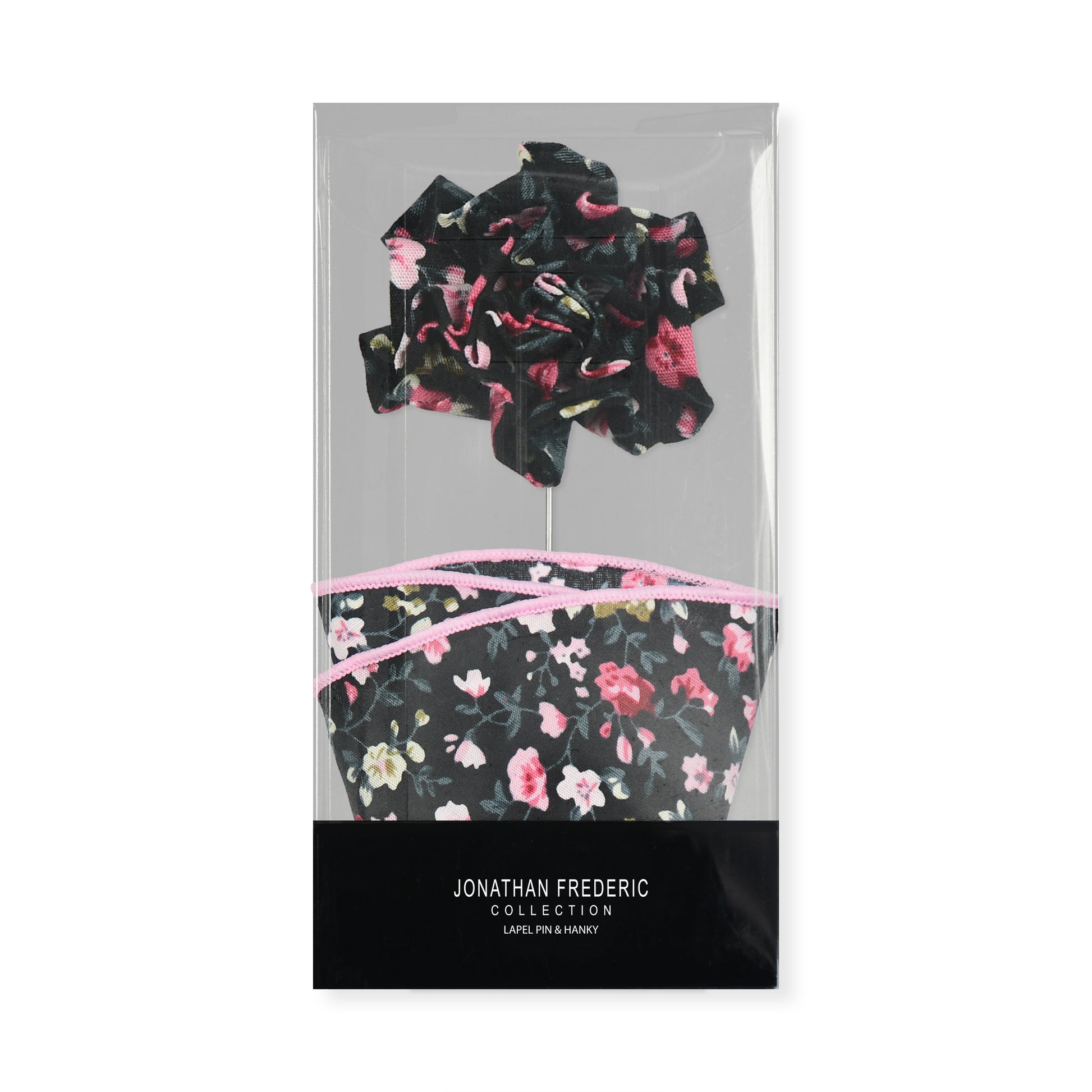 Pink & Dusty Rose Floral Lapel Pin & Hanky Set