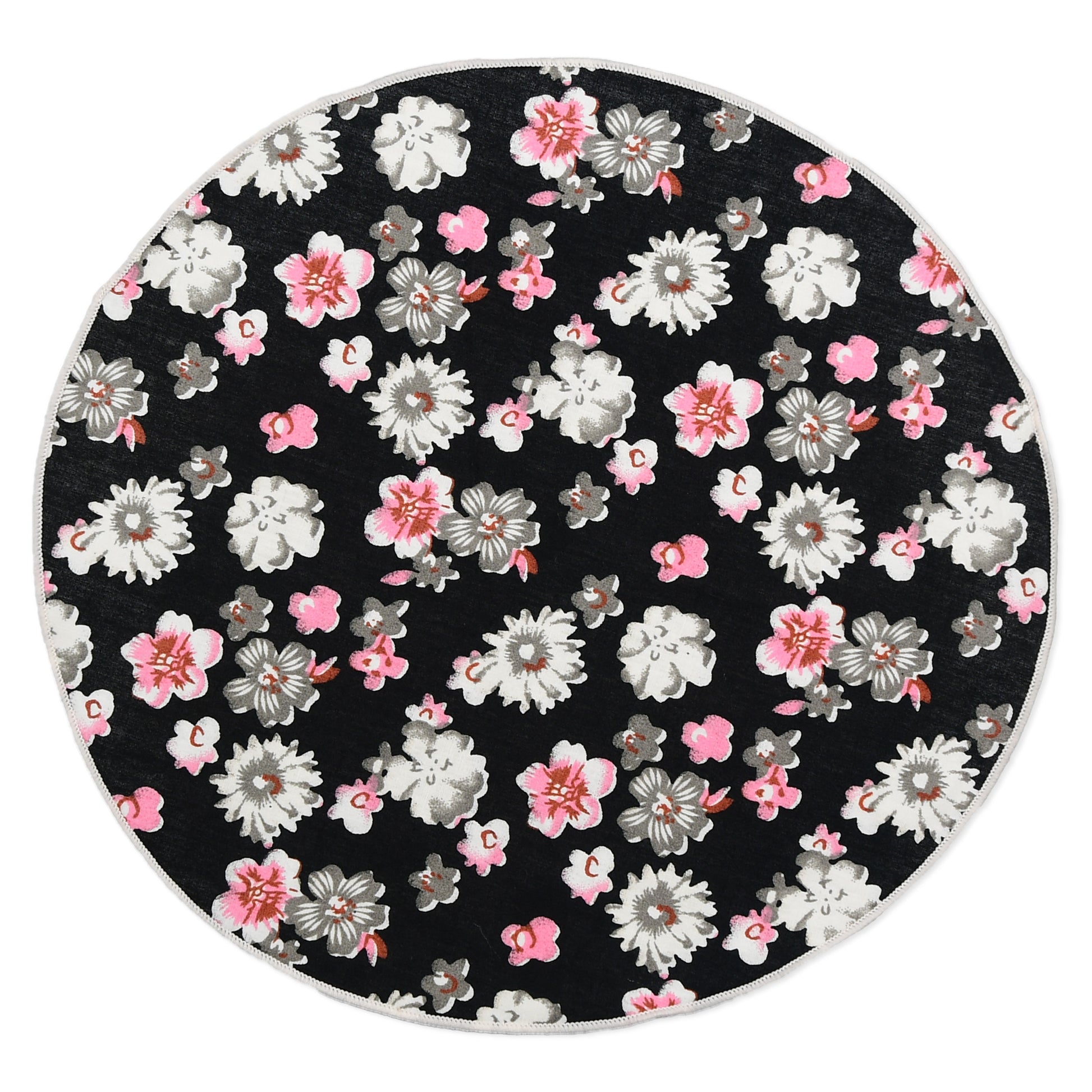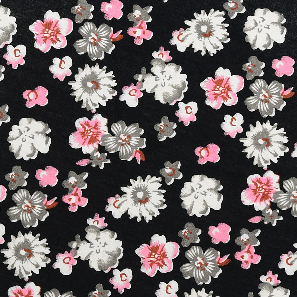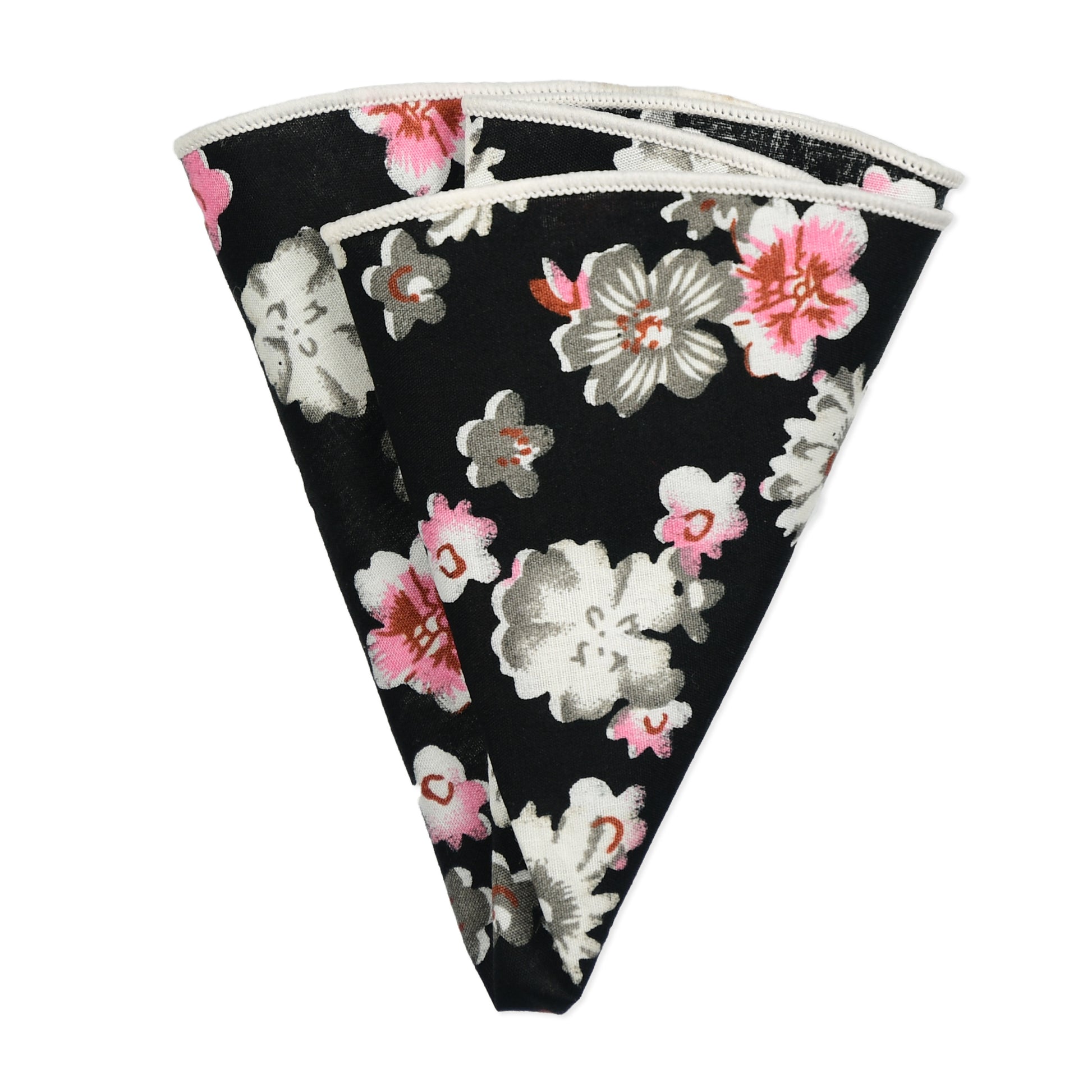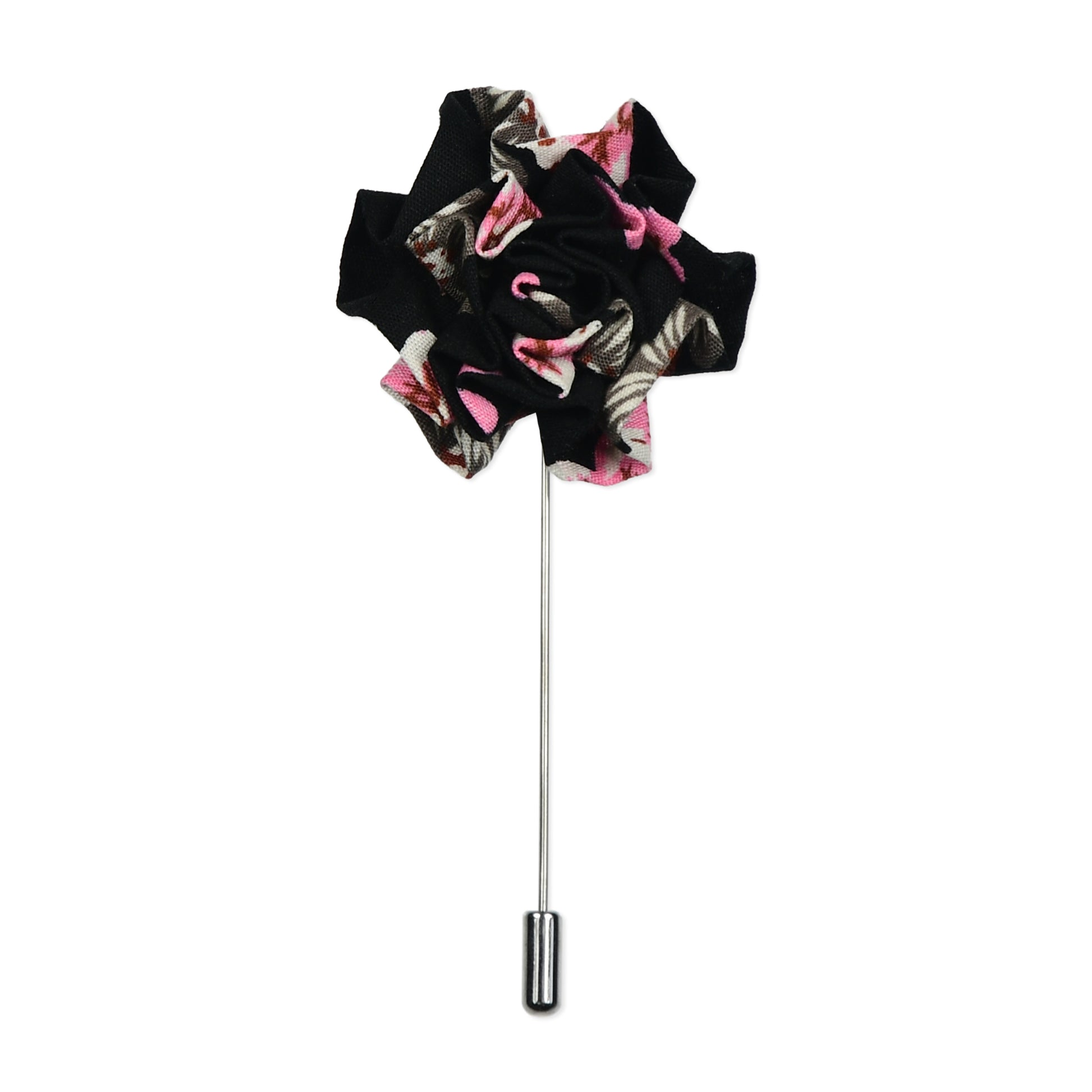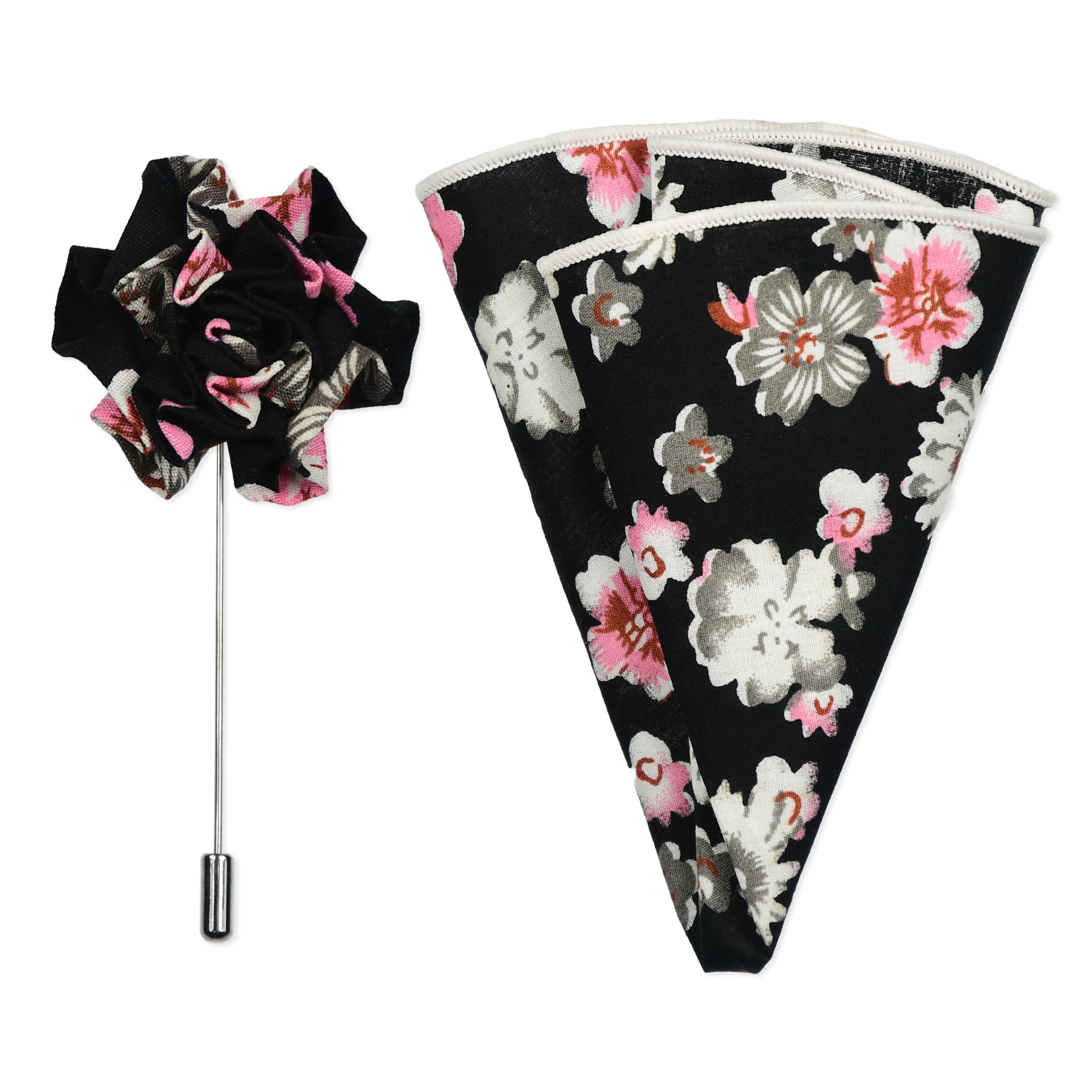 Silver, Black & Pink Floral Lapel Pin & Hanky Set