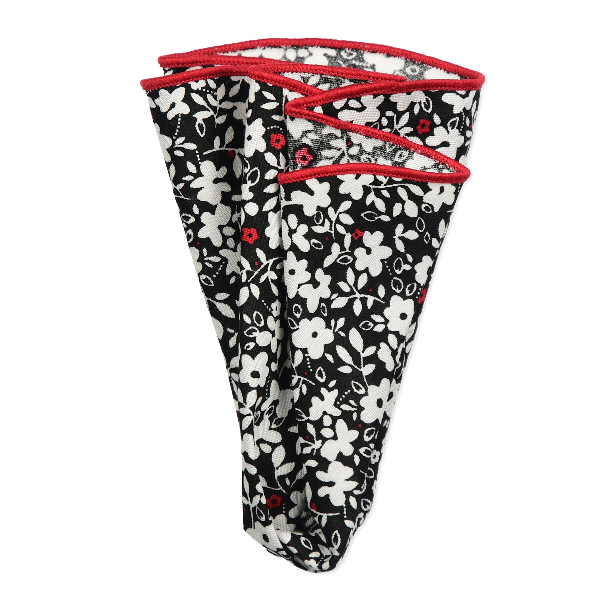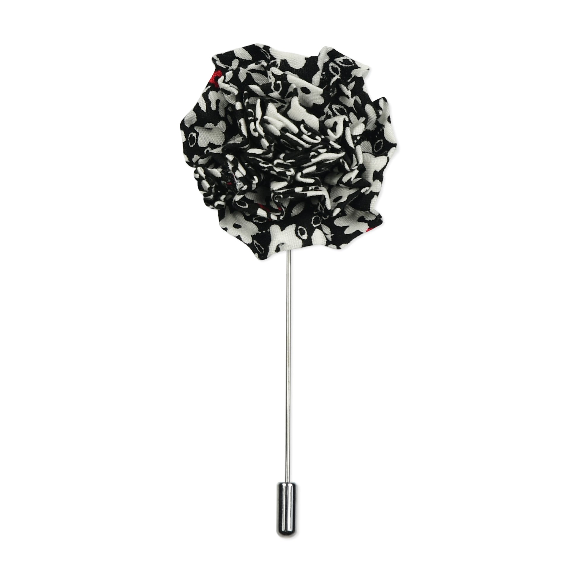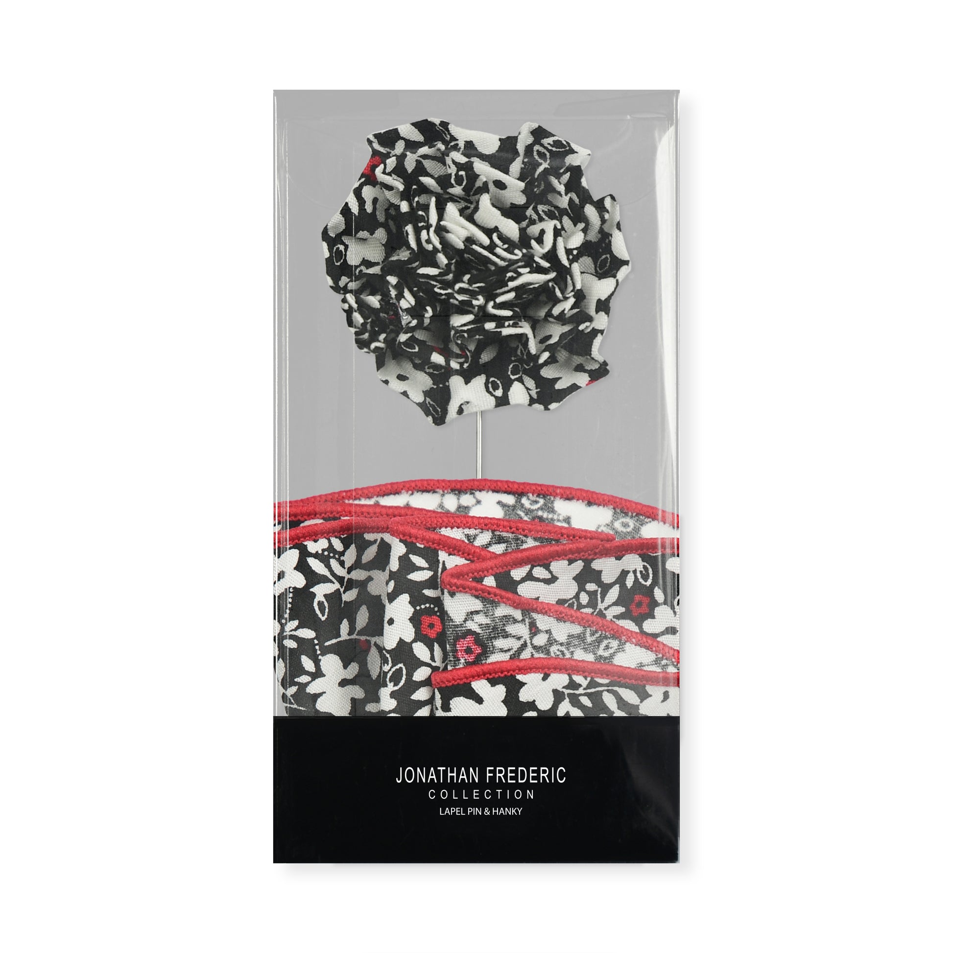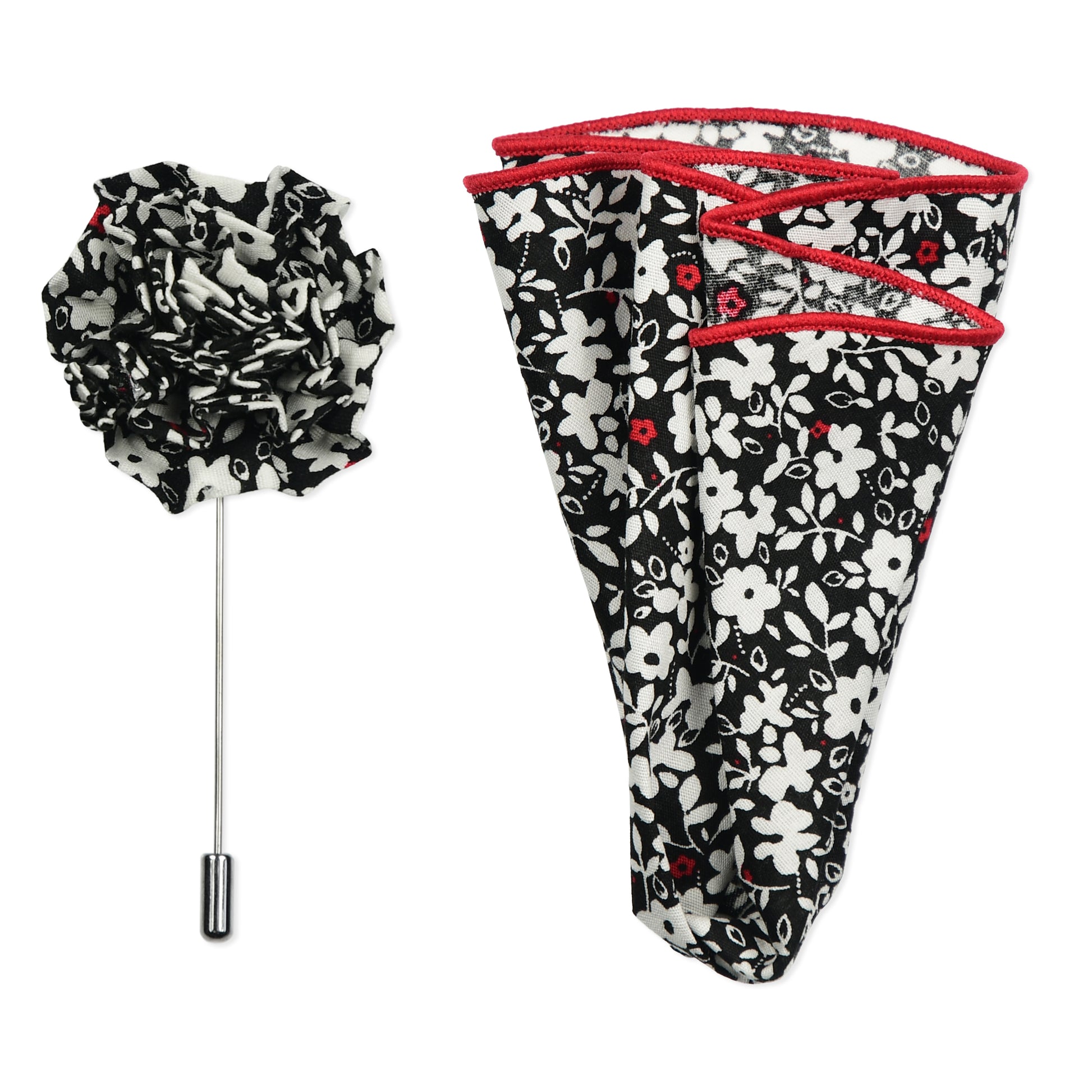 Red & Black Floral Lapel Pin & Hanky Set