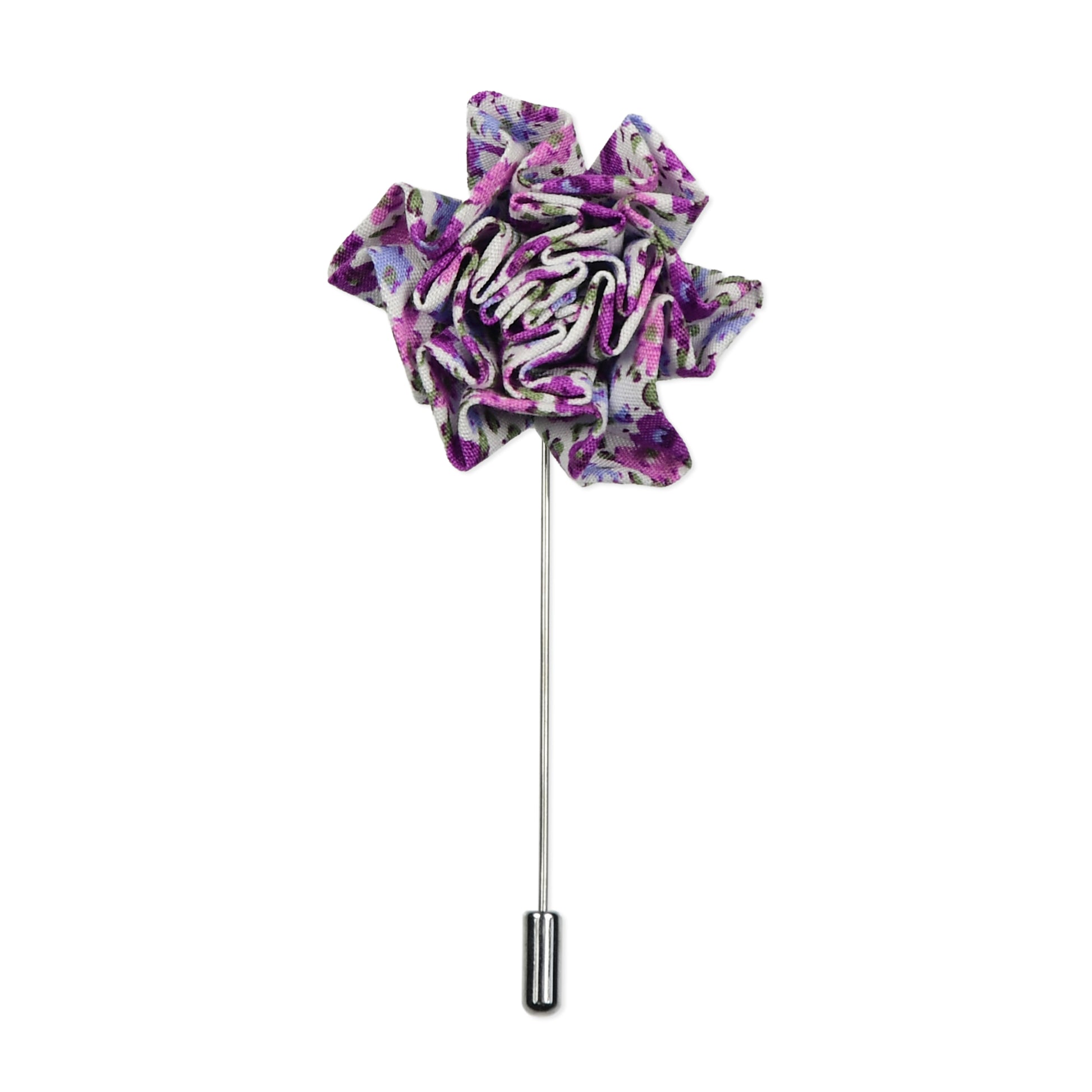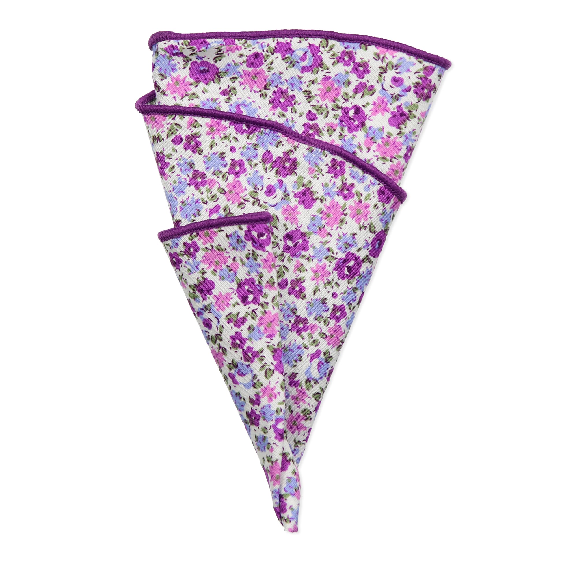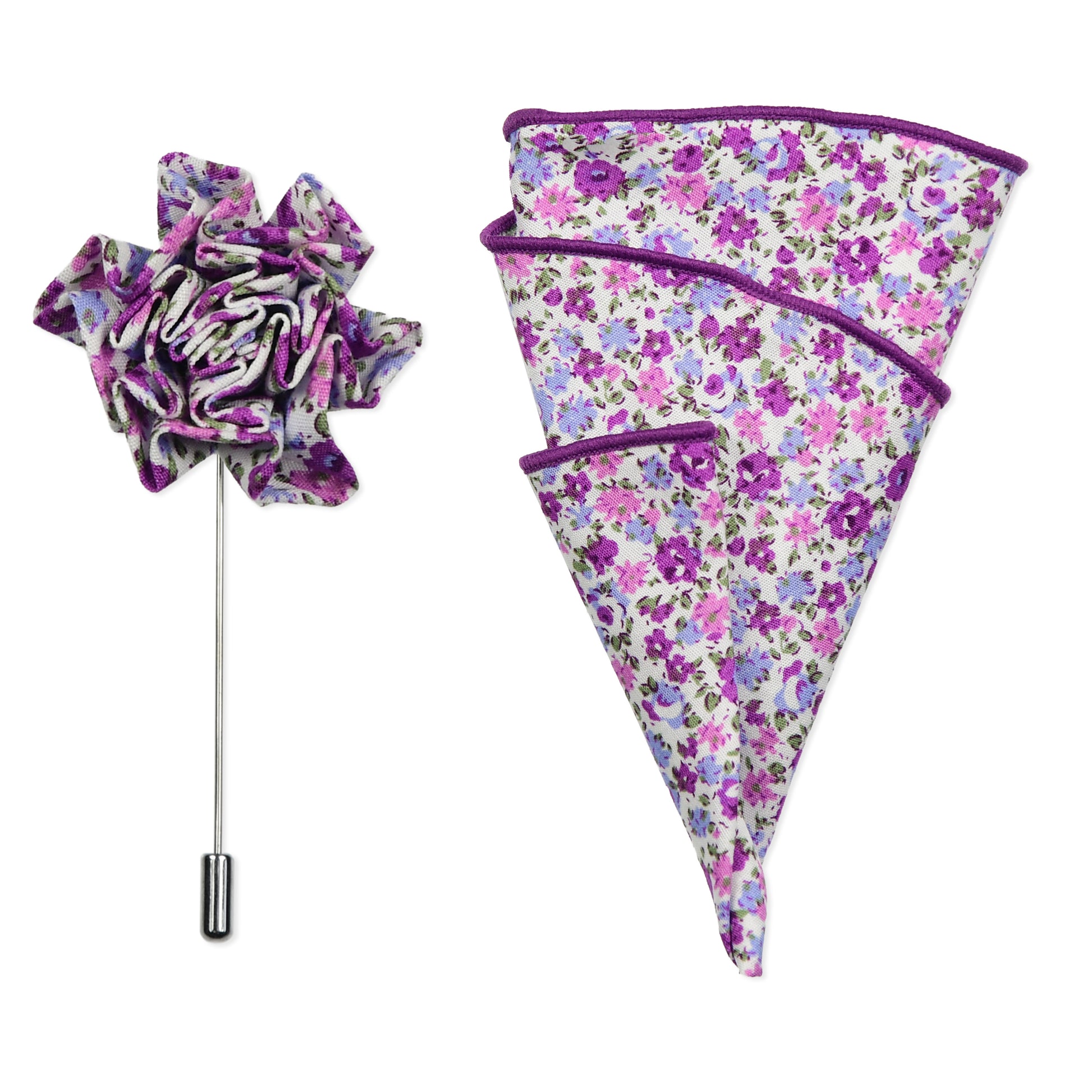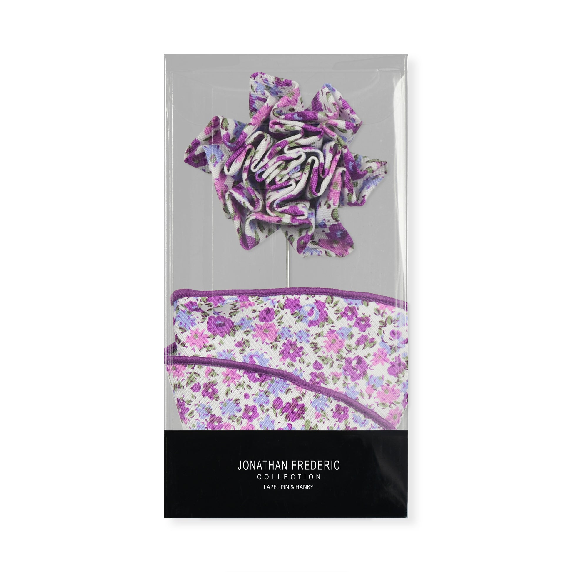Plum, Lavender & Periwinkle Floral Lapel Pin & Hanky Set