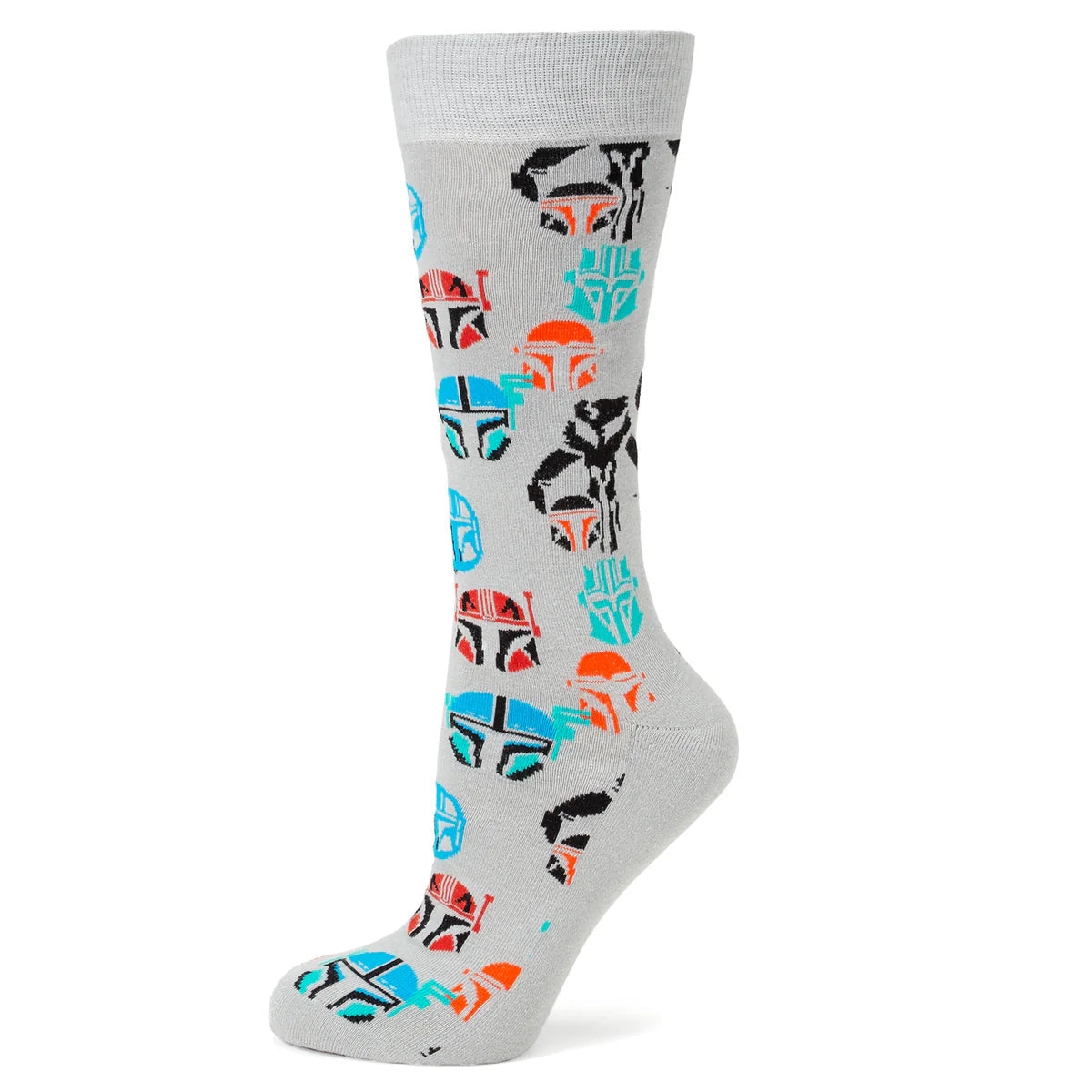 Embrace the bold spirit of Mandalore with the Mandalorian Helmet Multicolored Gray Gift Set. This striking set includes a pair of gray socks featuring vibrant, multicolored Mandalorian helmets and a matching lapel pin. Perfect for the Star Wars enthusiast who values both tradition and flair, these accessories add a touch of Mandalorian pride to any outfit. Showcase your allegiance to the Mandalorian way with every step and detail.